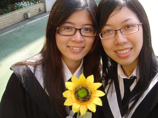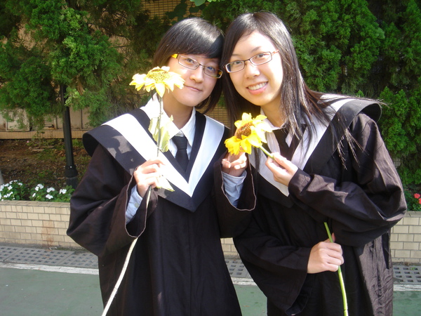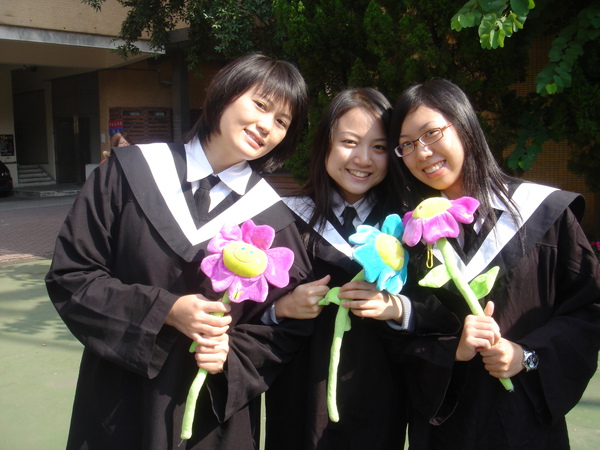 戴學士帽、拿筒子、白日葵、小花好多花樣=口=