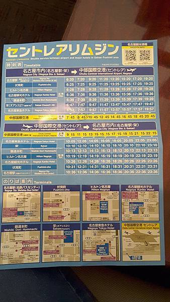 給我們這張「セントレアリムジン」(Center Air limousine:中部國際機場小型巴士)的時刻表觀光資訊