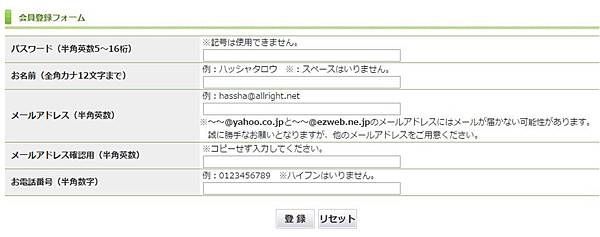 パスワード(半角英数5~16桁):password 密碼(半形的英文和數字5~16碼)