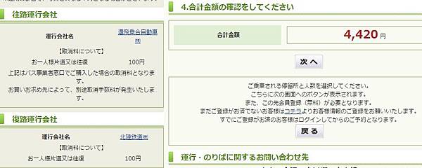 接著就會出現讓你確認的日期、班次、時間,以及濃飛巴士的外觀及座位照片供你參考