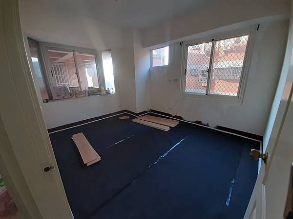 因舖設完成後,房間門下方與新磁磚(下篇介紹)有高低差,所以老公一樣使用靜音墊和木地板裁剪後填起來。
